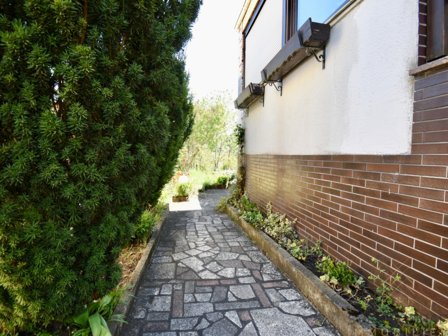Neben der praktischen Wohnraumaufteilung im Inneren, bietet das Anwesen eine kleine aber feine Außenanlage mit schöner, unverbaubarer Aussicht welche großzügig Sonne in ihren Garten strahlen lässt.