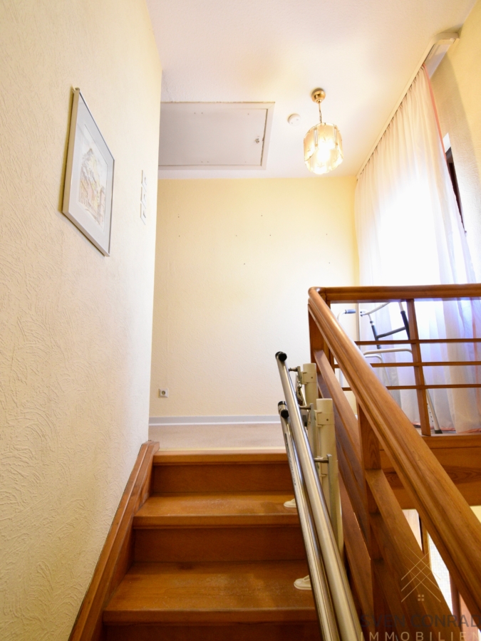 Highlights: – gepflegtes Wohnanwesen – praktische Grundrissgestaltung – direkt bezugsfertig (Räumung erfolgt in Kürze) – überdachter Eingangsbereich – modernisiertes/barrierefreies Bad – Panorama-Fenster im Wohnzimmer – Treppenlift (barrierefrei) – teilweise elektrische Rollläden – separater Kellereingang – schöner Garten – Gartenhaus mit Elektro-/Wasseranschlüssen