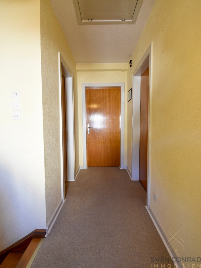 Obergeschoss: – Flur – Schlafzimmer 1 – Durchngangszimmer – Kinderzimmer 1 – Balkon – Zugang Dachboden