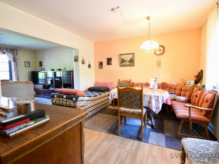 Zusammengefasst: Das Haus, inklusive des Grundstücks, bietet ausreichend Wohnraum, wurde pfleglich behandelt und kann mit ein paar Renovierungsarbeiten in ein kleines gemütliches und vor allem bezahlbares Eigenheim verwandelt werden. Da das Haus von seiner ursprünglichen Planung als 2-Parteien-Haus geplant und vorinstalliert wurde, wäre auch eine Abtrennung in 2 Wohneinheiten realisierbar.