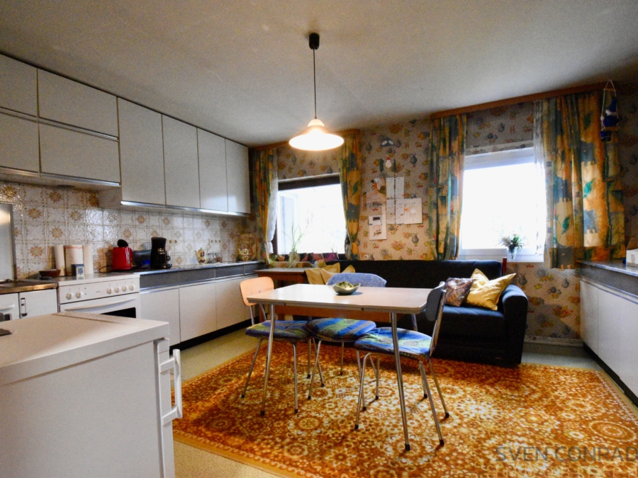 Das im Jahr 1965 massiv erbaute Haus steht auf einem weitläufigen Grundstück von ca. 1.738 m², das mit seinen zahlreichen Unterständen, einem charmanten Gartenhäuschen und direktem Zugang zum angrenzenden Wald begeistert.