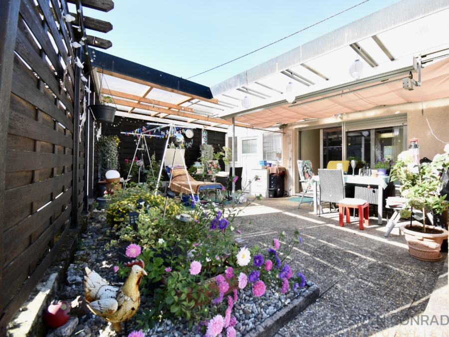 Im Außenbereich der besonders ruhig gelegenen Immobilie erwarten Sie mehrere Highlights. Die großzügige Gartenlandschaft beispielsweise wurde besonders liebevoll angelegt und hält neben einer schönen Grünfläche auch blumige Akzente vor. Hervor sticht zweifelsfrei die in den Gartenbereich integrierte und vom Inneren des Wohnanwesens betretbare ca. 25 m² große Terrasse. Diese lädt zum Verweilen ein und bietet sich aufgrund ihrer süd-westlichen Himmelsausrichtung in besonderem Maße an, den Tag entspannt und sonnig ausklingen zu lassen.