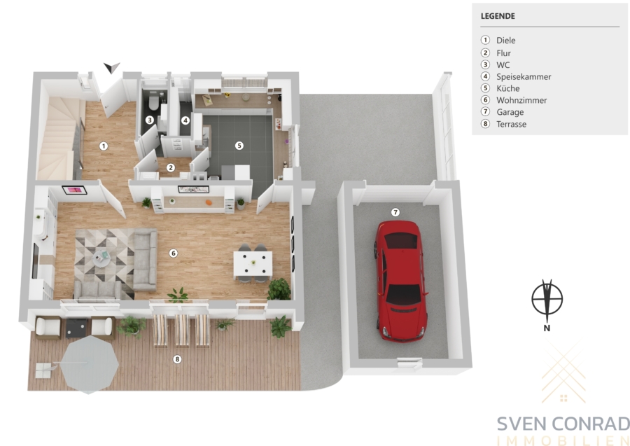 Die zur Straße hin gelegenen Garage und der dazugehörige gepflasterte Hof runden das Komfortangebot dieser Immobilie gänzlich ab.