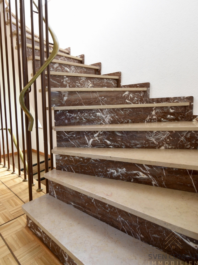 Die lichtdurchflutete Wohnraumaufteilung erfüllt gänzlich moderne Wohnansprüche. Als Mittelpunkt dient der im Erdgeschoss befindliche ca. 36 m² große Wohn- Essbereich der mit klassisch gehaltenem Parkettboden versehen ist. Von hier aus haben Sie unmittelbaren Zugang nach außen auf die charakterstarke nicht einsehbare ca. 30 m² große Terrasse. Von dieser betreten sie das weitläufige Grundstück mit ausreichend Grünfläche und schönem Baumbestand.