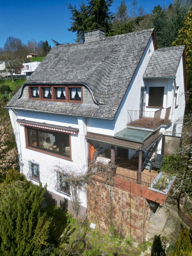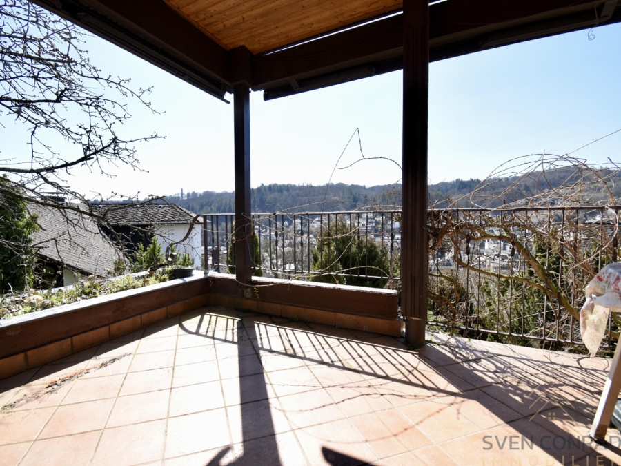 Das in herrlicher Höhenlage im Jahr 1963 in massiver Bauweise errichtete freistehende Einfamilienhaus befindet sich auf einem zur verkehrsberuhigten Straße sichtgeschützten ca. 809 m² großen Grundstück in Alleinlage. Das helle und lichtdurchflutete Haus mit seinen insgesamt ca. 170 m² Wohnfläche mit unverbaubarem Blick auf den Stadtkern von Idar kann man als echte Rarität bezeichnen.
