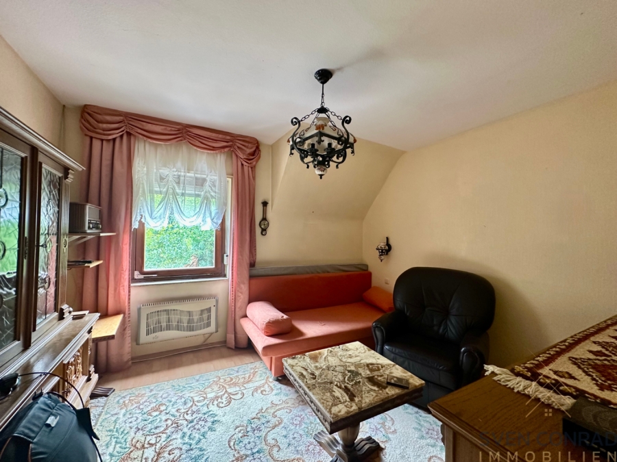 Eine offene Terrasse mit herrlichem Panorama-Blick lädt zum Entspannen und Genießen ein. Das Wohnhaus wurde in den späten 1930er Jahren errichtet und verfügt über ca. 105 m² Wohnfläche, verteilt auf zwei Ebenen. Im Erdgeschoss empfängt Sie eine einladende Diele, die fließend in den großzügigen Wohnbereich mit gemütlichem Kamin übergeht. Von hier aus gelangen Sie direkt in den wunderschönen Garten. Die separate Küche bietet Platz für gemeinsame Kochmomente, während das Gäste-WC für zusätzlichen Komfort sorgt. Im Obergeschoss erwarten Sie ein geräumiges Schlafzimmer mit französischem Balkon, ein helles Badezimmer mit Badewanne sowie ein weiteres Schlafzimmer.