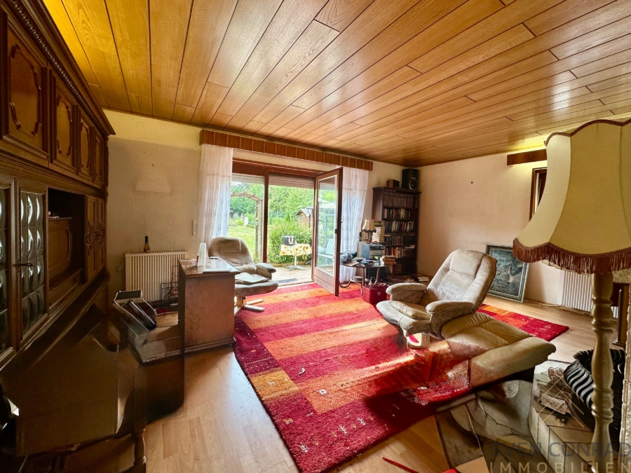 Das Haus ist vollunterkellert und bietet neben einer integrierten Garage mit direktem Zugang zum Wohnhaus, praktische Abstellräume, einen Hauswirtschaftsraum und eine kleine Werkstatt. Die Dacheindeckung wurde vor etwa 20 Jahren erneuert, dennoch präsentiert sich das Haus teilweise renovierungsbedürftig. Beheizt wird es durch eine Elektroheizung sowie den wohlig-warmen Holzkamin im Wohnzimmer. Mit handwerklichem Geschick und Liebe zum Detail lässt sich hier ein modernes Wohnerlebnis in absoluter Traumlage realisieren. Das Grundstück bietet unzählige Möglichkeiten für Gartenfreunde, Hobbygärtner oder Naturliebhaber.