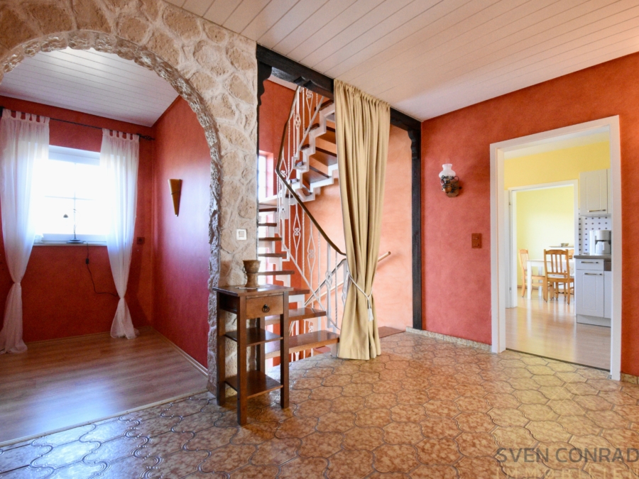 Dieses außergewöhnlich gepflegte Einfamilienhaus in ruhiger Lage von Mittelbollenbach präsentiert sich als wahres Raumwunder, dessen Größe von der Straßenseite aus kaum zu erahnen ist. Erbaut im Jahr 1974 in solider Massivbauweise, thront die Immobilie auf einem ca. 529 m² großen Grundstück und bietet ein beeindruckendes Wohnkonzept über mehrere Ebenen. Mit einer großzügigen Wohnfläche von etwa 270 m² sowie zusätzlicher Nutzfläche eröffnet sich hier ein Zuhause mit vielfältigen Möglichkeiten.