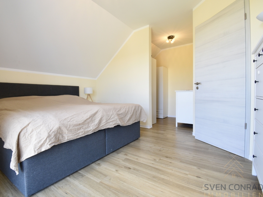 Dachgeschoss (63 m²): – Elternschlafzimmer – Ankleide – Kinderzimmer 1 – Kinderzimmer 2 – Flur – Bad (Dusche/Wanne/WC) – Zugang Dachboden