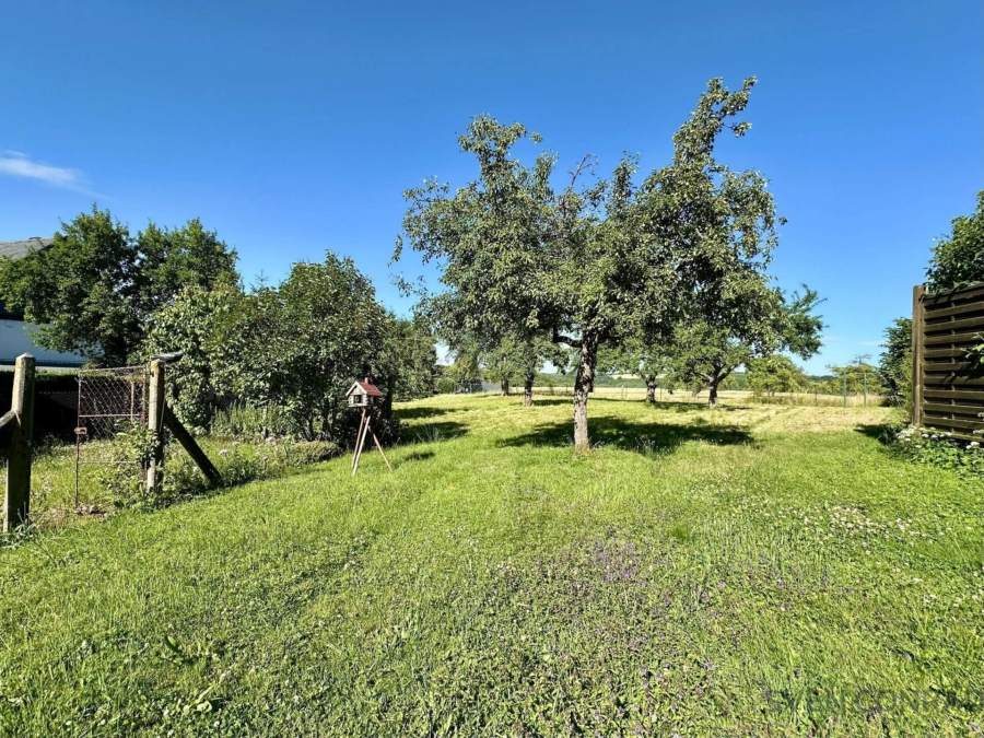 Ein besonderes Highlight ist zweifellos der Außenbereich: Eine grüne Oase mit weitläufiger Rasenfläche, gepflegtem Nutzgarten und freiem Blick auf den angrenzenden Wald schafft ein einmaliges Wohngefühl. Hier lässt sich die Natur mit allen Sinnen genießen – ob beim Gärtnern, Spielen mit Kindern oder entspannten Sommerabenden auf der Terrasse. Zusätzlich befindet sich eigene Zufahrt in den weitläufigen Garten – ideal zum Anliefern von Gerätschaften, Holz oder Grünschnitt.