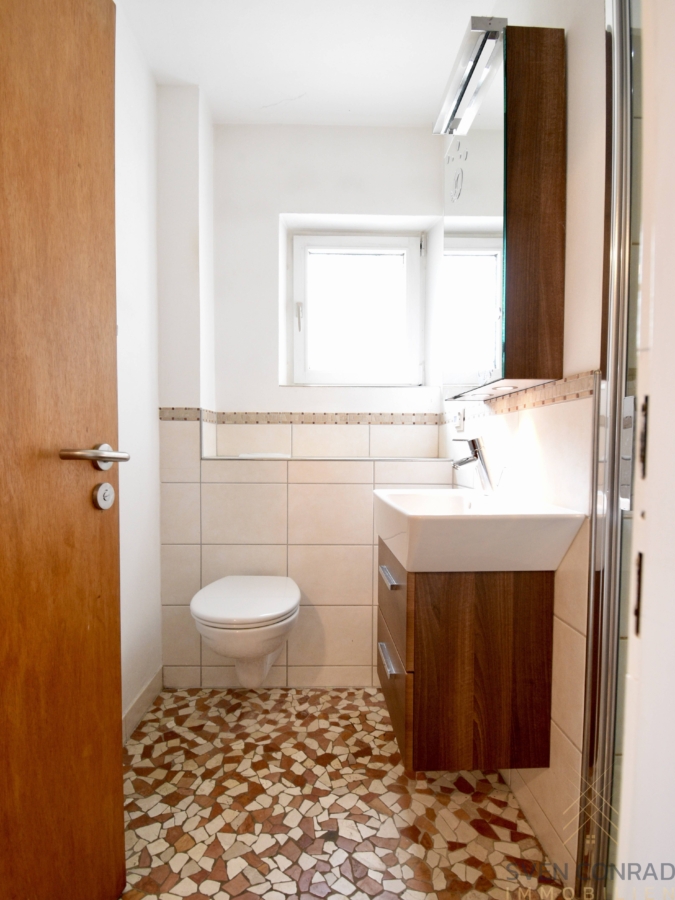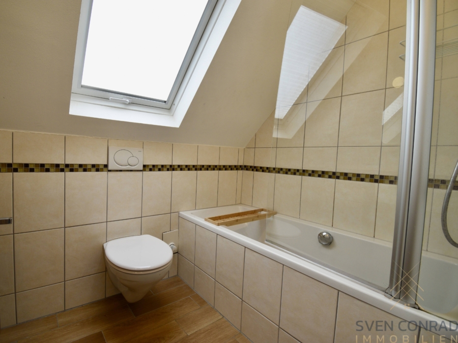So wurden die beiden Bäder bereits voll umfänglich modern saniert, mit integrierten Möbeln ausgestattet und bieten neben einer Badewanne (Bad OG) auch eine separate bodenebene Dusche (Bad EG).