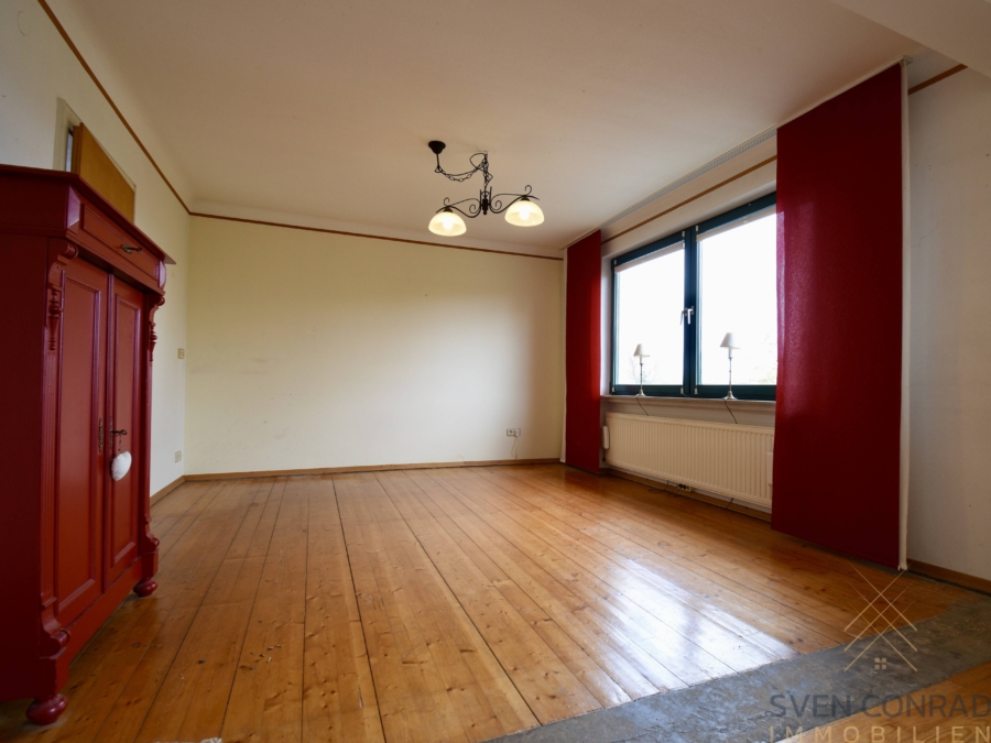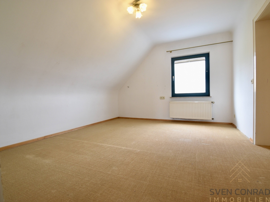 Entlang des Treppenaufgang gelangt man in das Obergeschoss, in dem sich insgesamt 3 Schlafzimmer (darunter ein Durchgangszimmer), sowie ein Badezimmer mit Badewanne, befinden. Hier können beispielsweise ein Kinderzimmer, sowie ein großes Elternschlafzimmer mit einem separaten Ankleideraum problemlos errichtet werden.