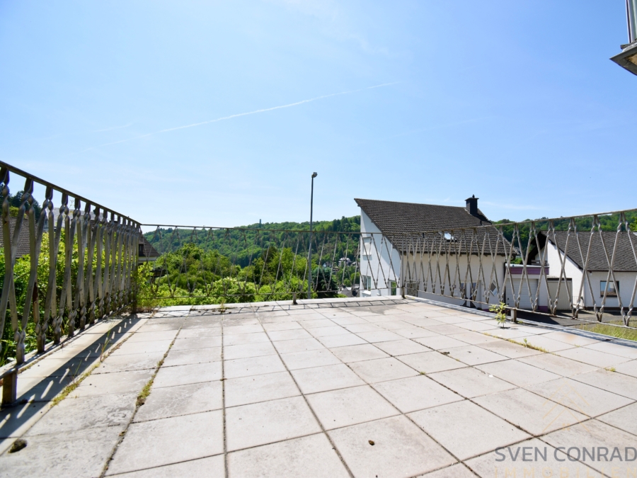 Die Doppelhaushälfte mit ihren ca. 134 m² Wohnfläche verteilt sich auf insgesamt 5 Zimmer, darunter 4 Schlafzimmer, 2 Bäder, 1 Balkon und 1 Terrasse. Hervorzuheben sind hier insbesondere der große Wohn-/ Essbereich (ca. 32 m² groß) mit Blick über den Stadtkern von Idar, der sonnige über die gesamte Hausbreite angelegte Balkon im Obergeschoss, sowie die vor dem Haus errichtete ca. 20 m² große Terrasse mit angrenzendem überdachtem Freisitz, welche zum Sonnentanken einlädt.