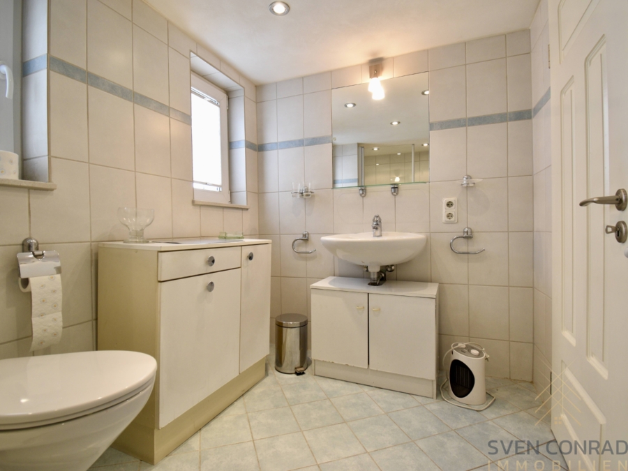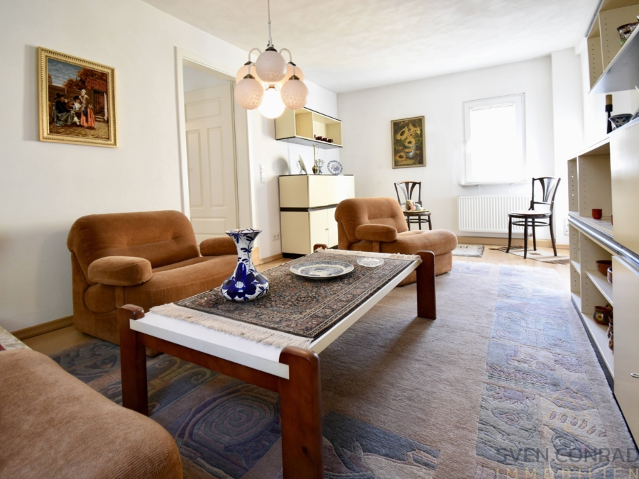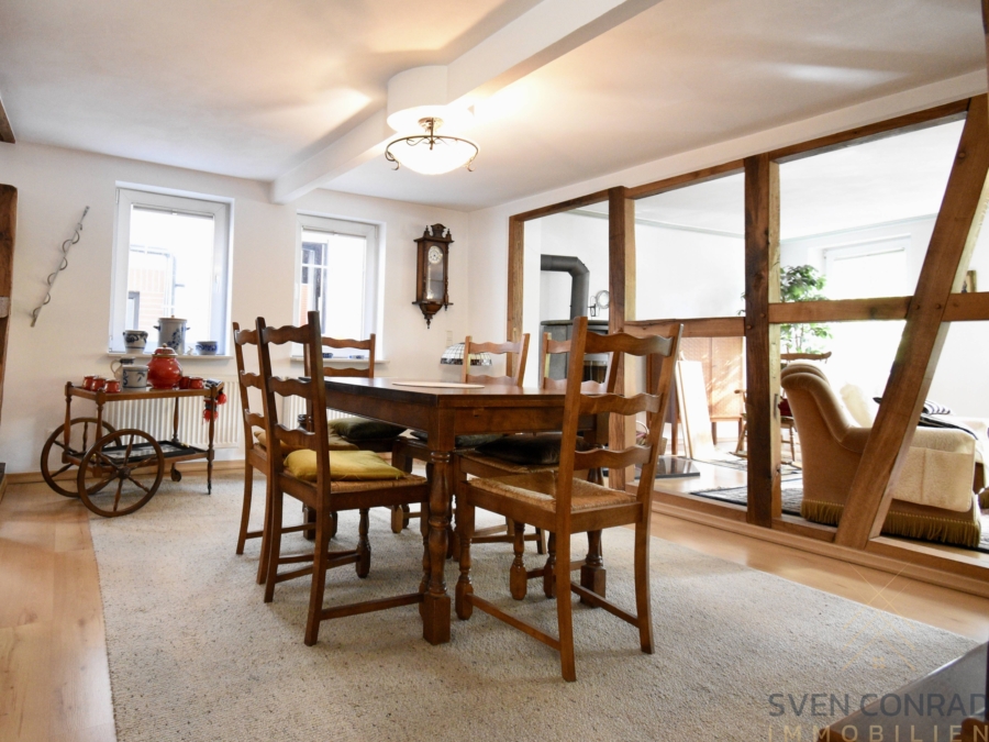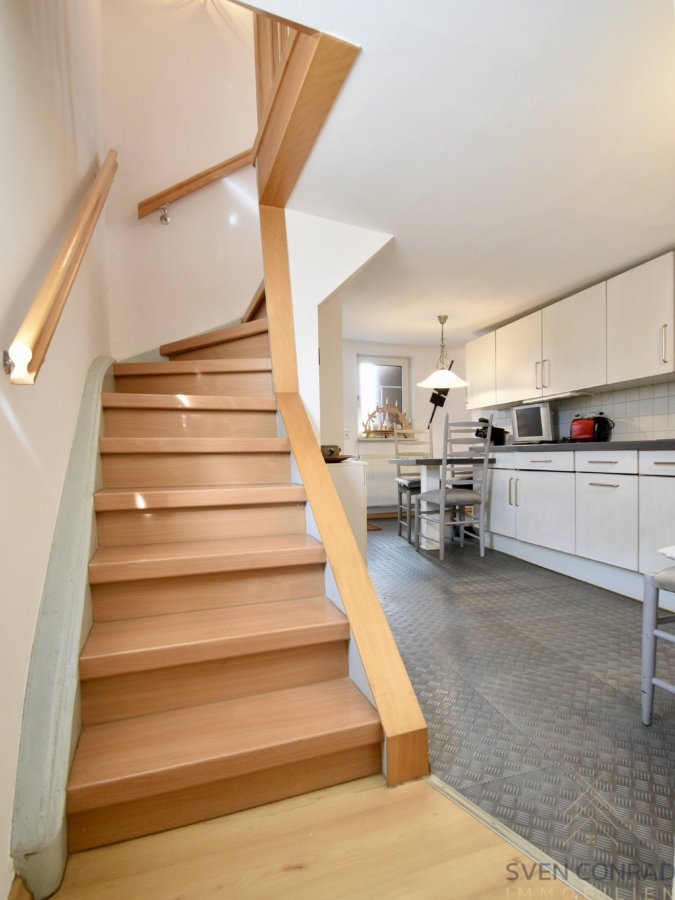 Insgesamt hält das Anwesen derzeit ca. 154 m² Wohnfläche und ca. 35 m² Gewerbefläche (Ladenlokal) bereit.