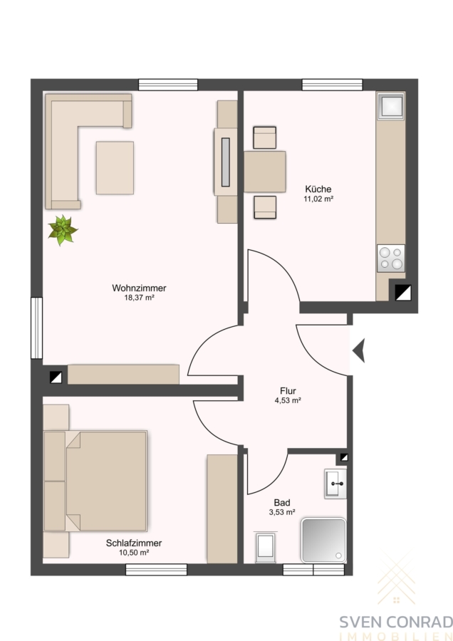 +++ 47 m² Wohnfläche: Ideal für Singles oder Paare.