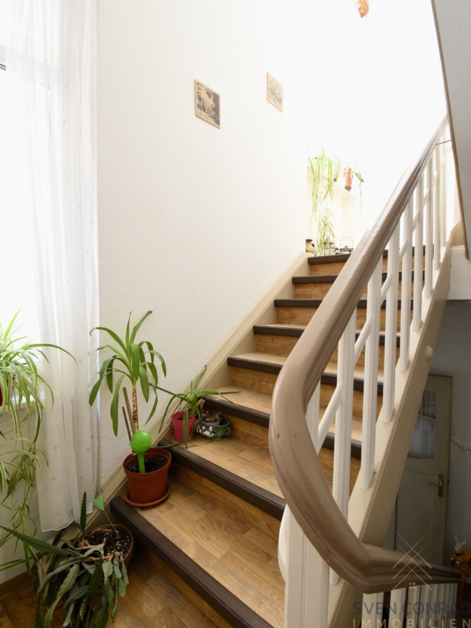 Ein separater, großzügiger Kellerraum, runden das Angebot ab. Das Parken von Fahrzeugen ist an der verkehrsberuhigten Straße unmittelbar vor dem Anwesen möglich.